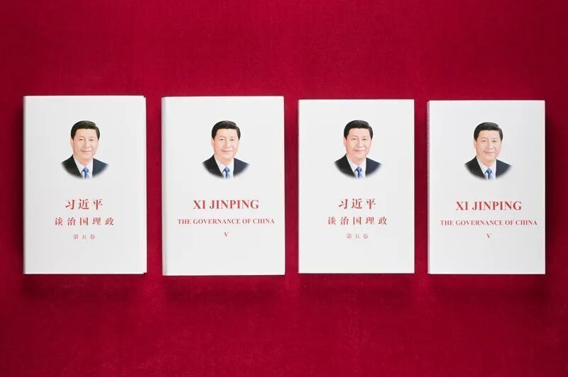 这是《习近平谈治国理政》第五卷中英文版的精装版和平装版。新华社记者 李贺 摄