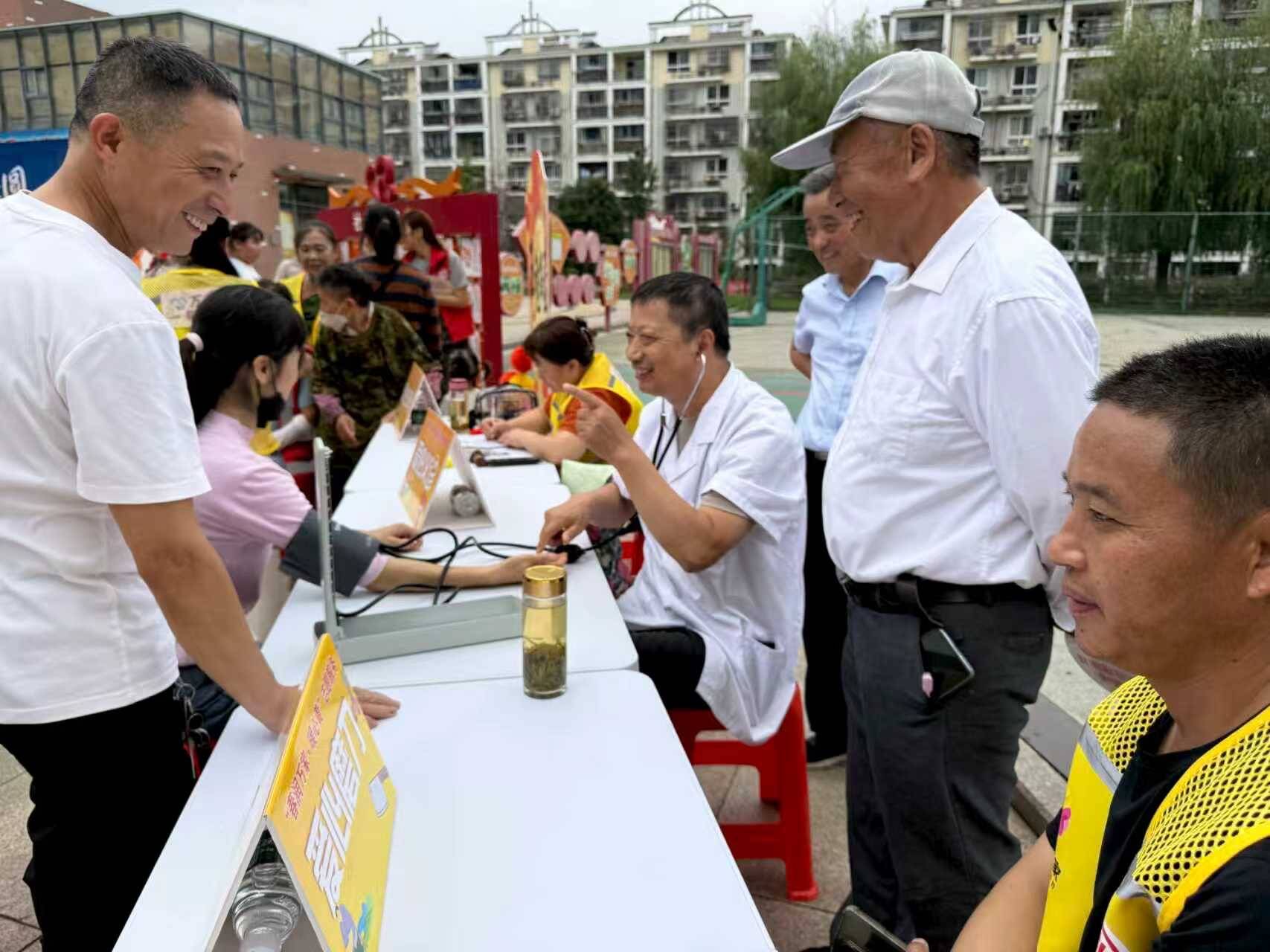 便民服务暖人心 邻里互助促和谐。延续社区 “一帮旧邻” 服务传统,结合居民实际需求拓展服务内容,以贴心便民举措解决居民难题,彰显社区人文关怀,促进邻里关系和谐。活动现场设置 “一帮旧邻” 服务区,为 60 岁以上老人提供免费理发服务,老人需排队登记后有序参与;安排专业人员为居民提供便民磨刀服务;同时开设免费义诊专区,医护人员为居民测量血压、血糖,并提供健康咨询与秋季养生建议。居民张阿姨感慨道:“以前中秋就是和家人吃顿饭,这次双节游园会既能玩游戏、兑奖品,还能享受免费服务、和邻居聊天,感觉节日更有意义了!”