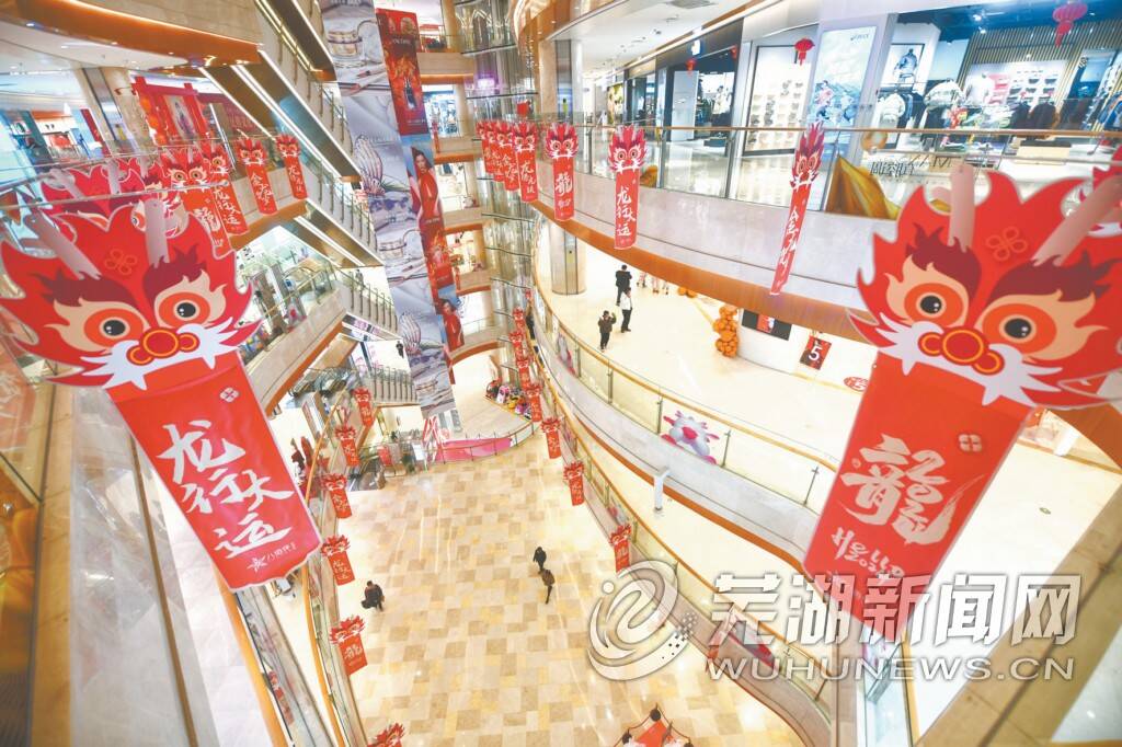 小商铺里火红的灯笼、对联、精美的窗花、可爱的摆台,喜庆连连;黄金饰品专柜生肖龙吊坠、手链、转运珠,“龙”味十足;商场超市的龙年年货一条街,红红火火……各种带有“龙”元素的商品,带来了喜庆的新春氛围,消费者们也纷纷将各种“吉祥”“如意”“幸福”“美满”带回家。