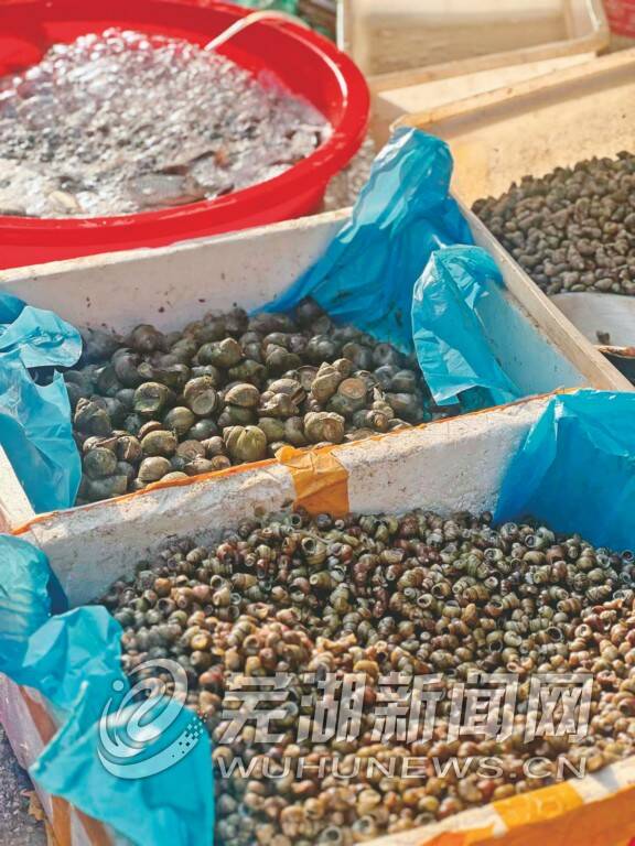 除了小龙虾,蛰伏泥塘的螺蛳、慵懒的河蚌,也纷纷爬了出来。记者看到,螺蛳、河蚌等春季时令货已大量上市成为抢手货,不少水产摊位前都围着购买的市民。“我们家都挺爱吃螺蛳的。问了下价格,也不贵,准备买点螺蛳肉,中午回去和韭菜一起爆炒一下,味道很鲜的。”市民董先生打算周末再买点螺蛳回家弄个五香螺蛳。此外,河蚌等贝壳类水产也是菜市场里的“宠儿”。摊主介绍:“芜湖人把河蚌称为水菜,在春天的时候,会和咸肉、咸排骨一起炖汤,再放点小青菜,主打一个鲜。上市以来,销量就特别好。”