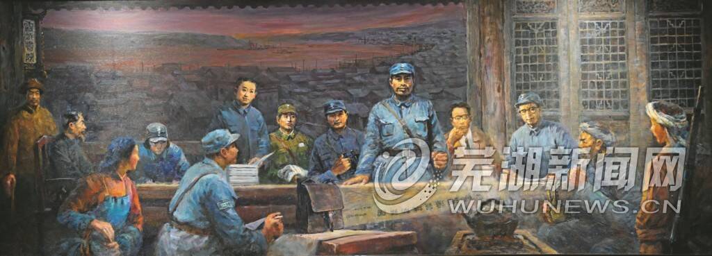 中共湘潭市委党史研究室党史科负责人肖寰宇带领我们回顾了那段尘封的历史。1938年11月12日深夜,长沙发生了著名的“文夕大火”,大火持续两天两夜,五六万栋房屋被烧毁,3000多名居民和抗敌伤病员被烧死。13日,周恩来从八路军驻湘通讯处撤往湘潭,来到霞城书院,在此召开紧急会议,研究突变的形势和采取制止在湘潭发生纵火事件的措施。得益于周恩来、叶剑英及杜聿明等人鲜明的态度并采取果断的措施,湘潭未重蹈长沙的覆辙,没有成为蒋介石焦土抗战政策的牺牲品,湘潭还成了长沙灾民的主要避难所。《保卫湘潭》画作反映的就是这一重要史实。