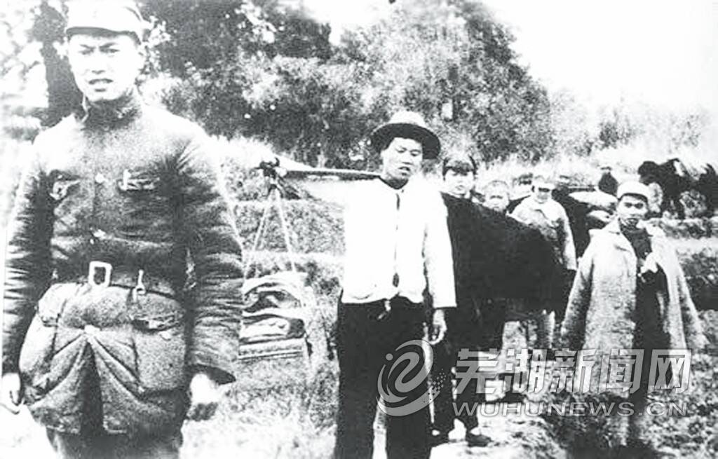 李先念(左一)率新四军豫鄂挺进纵队进入鄂中地区(资料照片)