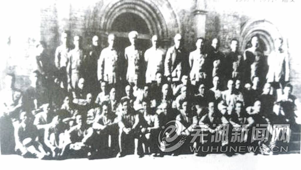 1938年10月,中国共产党六届六中全会在延安召开。图为代表合影,后排左起第二为孝感大悟籍杨松同志。(资料照片)