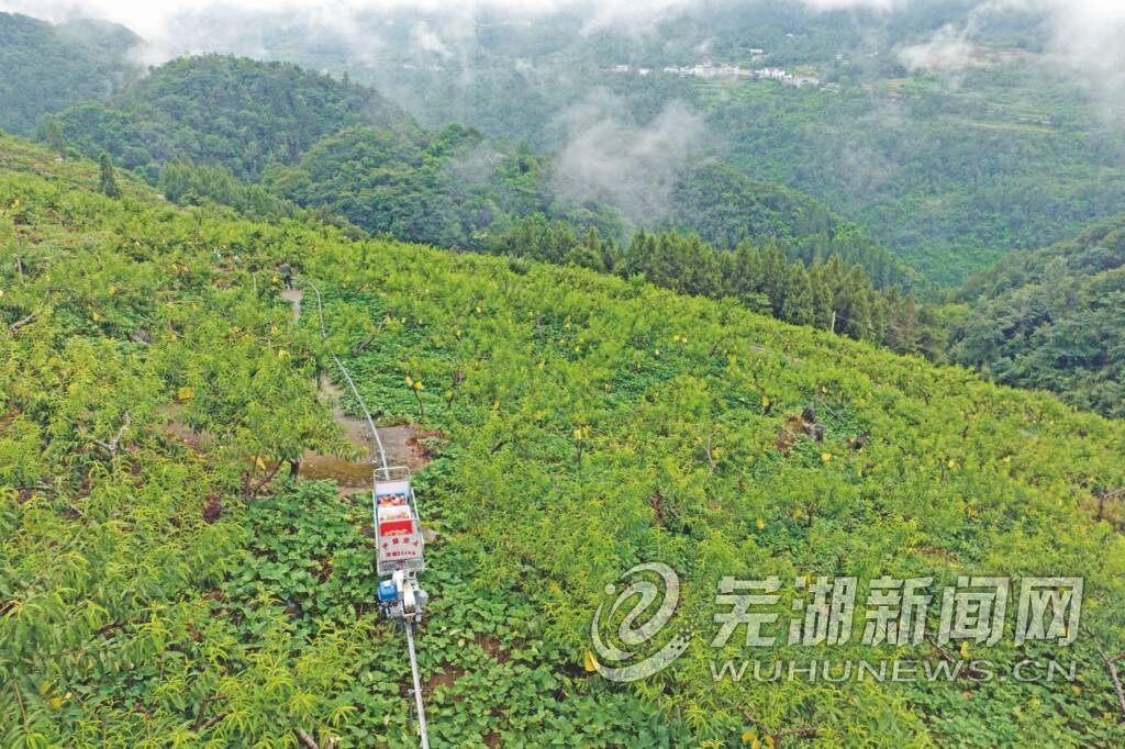 乌江村苹果桃基地里,负责人张洪胜正穿梭在绿荫丛中,为客户采摘苹果桃,不多时便摘了满满7大筐。把筐子装进田间小火车,启动马达,一筐筐水果沿着铁轨,很快就运送到公路边的销售点。