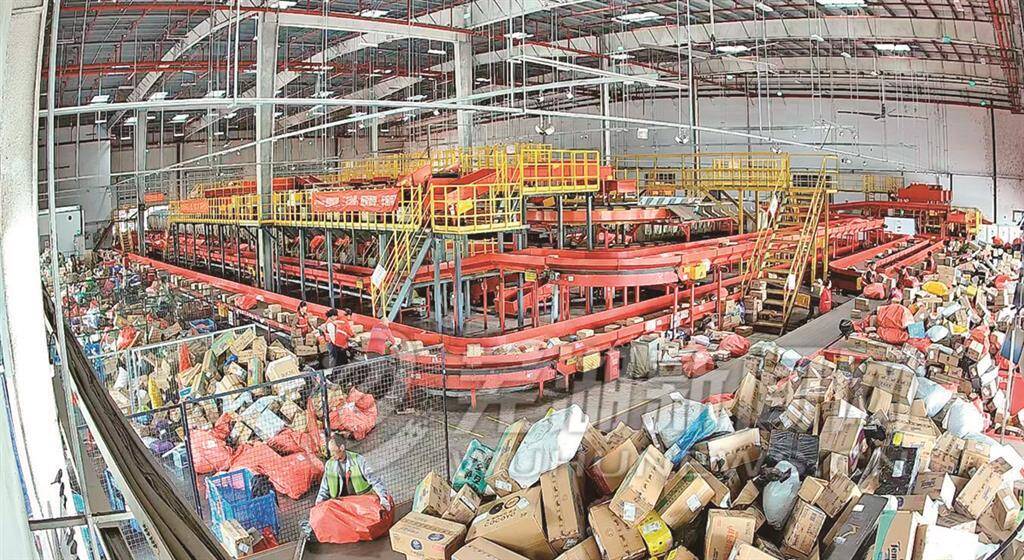 极兔速递分拨中心正在分拣“双十一”快件