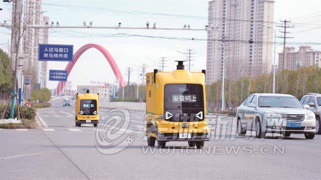 无人车在南陵街头送件