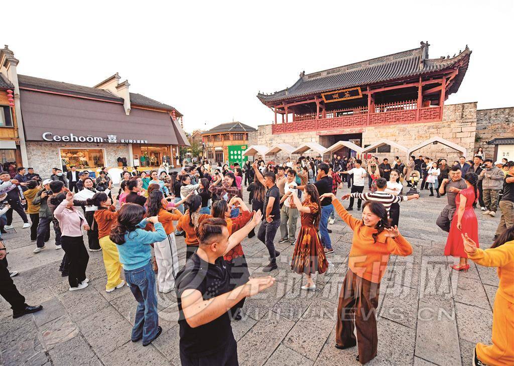 歌舞传情 字体大小: T T 2025-11-14 01:16 11月13日至14日,“皖和情深·文化同行”和田新玉歌舞团文化交流演出走进芜湖。演出以歌舞为媒搭建文化桥梁,为市民献上浸润新疆韵味的沉浸式视听盛宴。图为11月13日,在芜湖古城开展的快闪活动。 大江晚报记者 许诚 文/摄