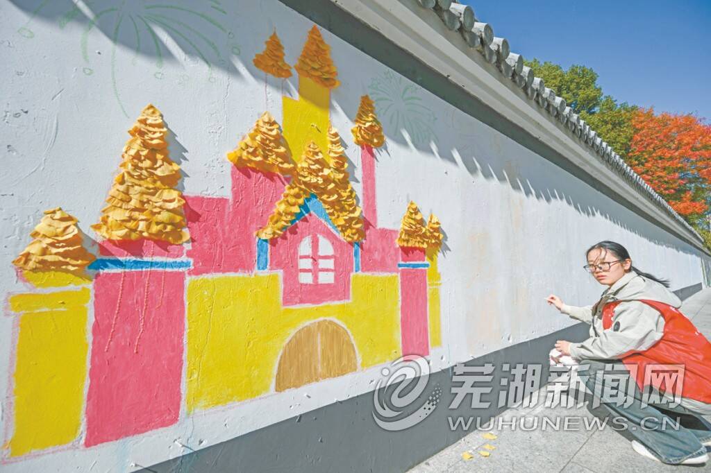 经过连续两天从下午到夜晚的精心绘制,墙绘工作进展顺利。在志愿者们灵巧的双手下,芜湖方特的梦幻城堡、古朴的徽州古城、象征工业力量的造船厂等标志性建筑,一一“跃然墙上”。这些图案端庄大气,透出欢乐热闹的氛围。十二生肖的憨态可掬、哪吒的活灵活现等传统文化元素也栩栩如生地呈现出来,格外惹人喜爱。冰冷的墙壁,因艺术的注入而变得温暖且充满故事。