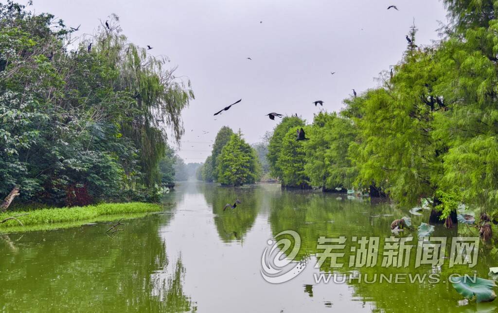 清晨,百鸟争鸣,婉转悦耳;黄昏,夕阳西下,群鸟归巢。乘船穿行朱湖湿地公园湖面,只见一群群鸬鹚或展翅高飞,或栖息树间,或觅食嬉戏,不禁感慨:好一个鸟类天堂!