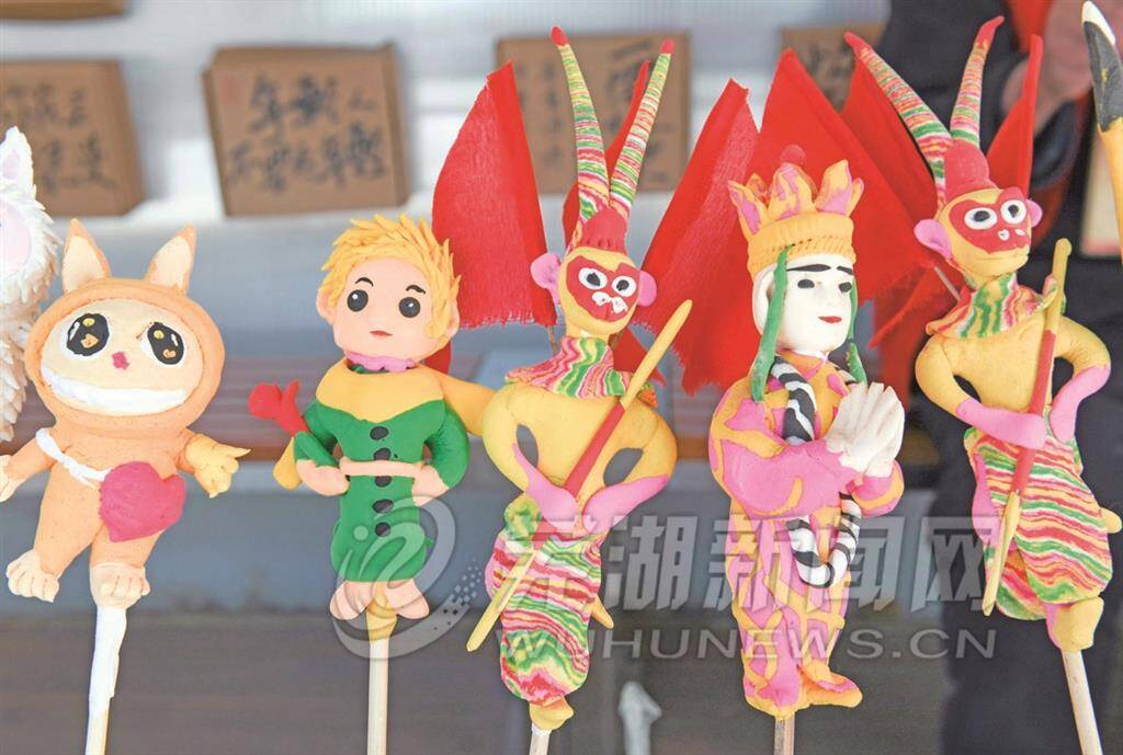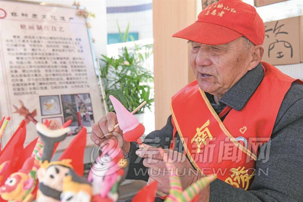 好在随着非遗保护的力度加大,弋江面塑渐渐迎来了新生。2008年,江仁寿被确定为弋江面塑县级非遗代表性传承人,后来又成为市级传承人;他在家乡弋江镇小学设立了传习基地,从2014年开始,连续9年开设面塑传习班,教孩子们捏面塑,他还经常带着面塑走进“美丽乡村大舞台”、农民丰收节等活动现场,40余场非遗展演,让7万余名观众感受到了弋江面塑的魅力。