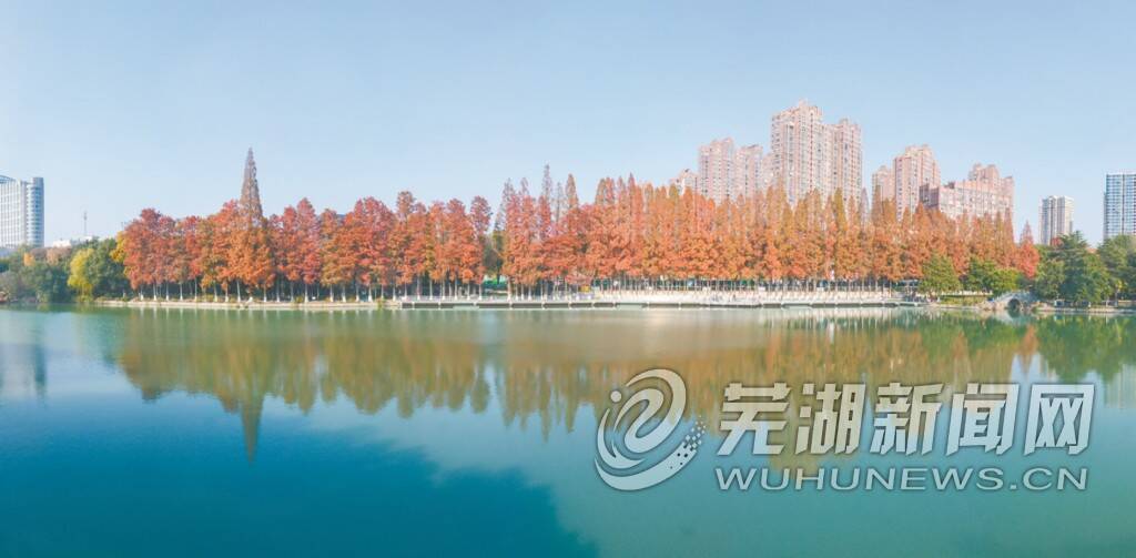 入冬以来,芜湖大地开启了“调色盘模式”,金黄色的银杏、古铜色的梧桐、火红的水杉交相辉映、色彩斑斓,将城市渲染成一幅绚丽多彩的美丽画卷。