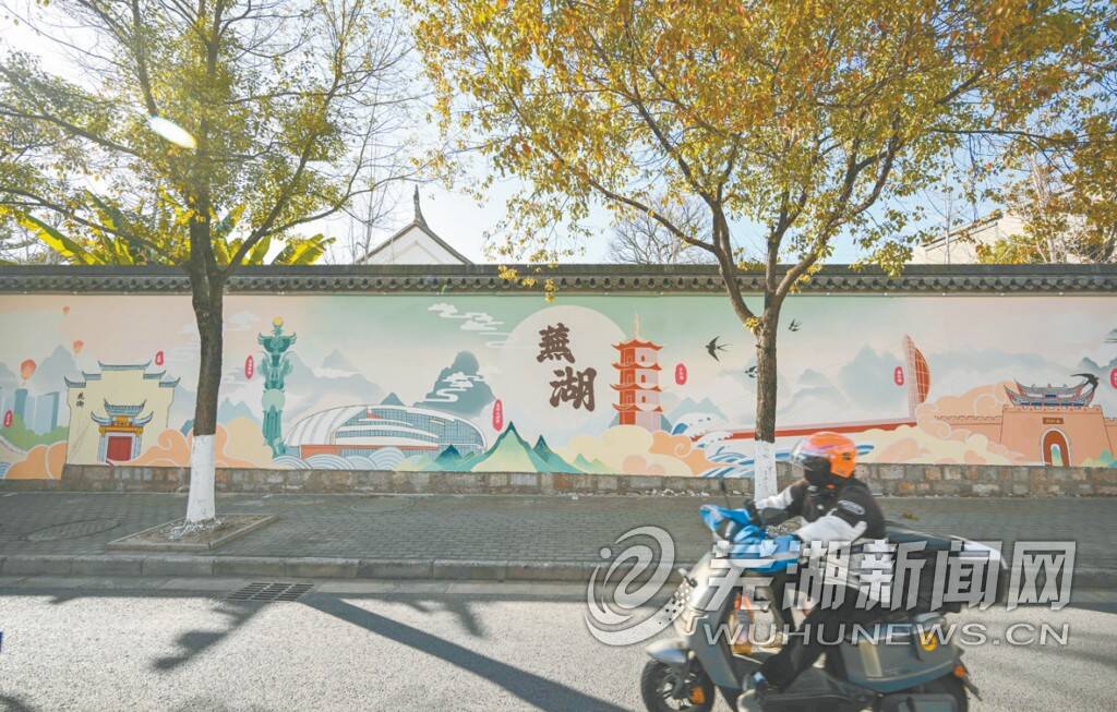 12月15日芜湖古城大成殿围墙上,嵌入有芜湖元素的彩绘,成为街头新风景。
