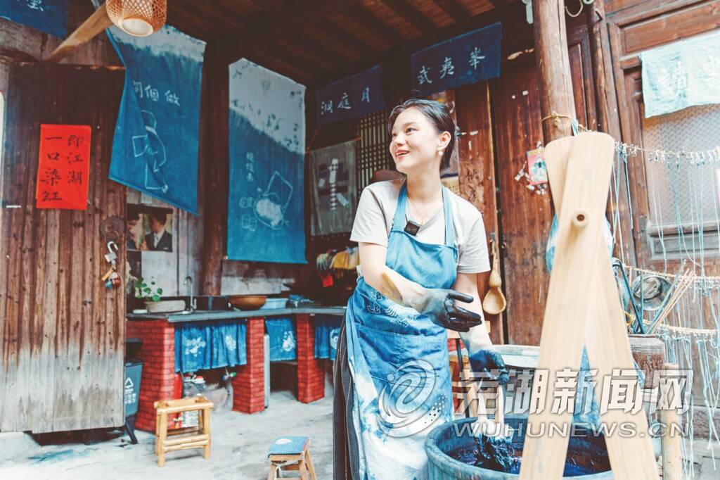 2018年,服装设计专业毕业的楼沙漠霜被这里的创业环境吸引,租下一幢四合院,创办“沙漠的染坊”。“这里最打动我的,是既能开门见山、拥抱自然,又能关门创作、专注事业。”她的工作室保留了老宅的木结构梁柱,阳光从古朴窗棂洒入,映照在蓝印花布上,焕发出传统工艺的当代魅力。