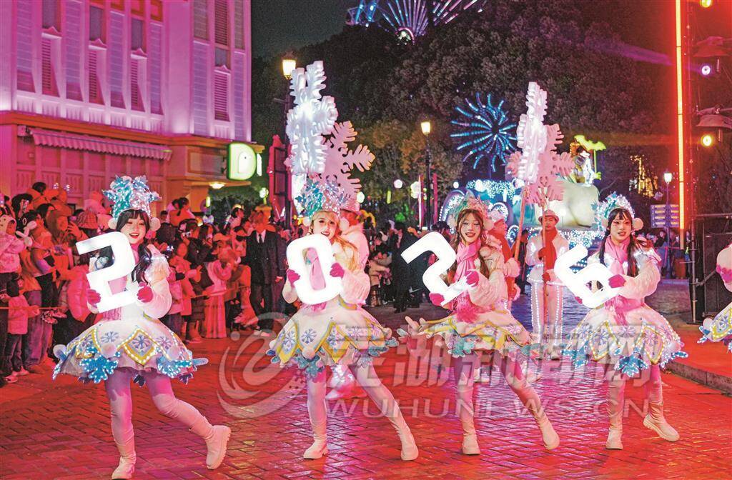 在刚刚过去的2026年元旦假期,我市围绕“皖美冬日 跨年芜湖”主题,以多元的产品供给、浓厚的节日氛围与坚实的安全保障,为市民和游客带来兼具潮流活力、文化底蕴与安全质感的假日体验。图为方特梦幻王国跨年夜表演现场。