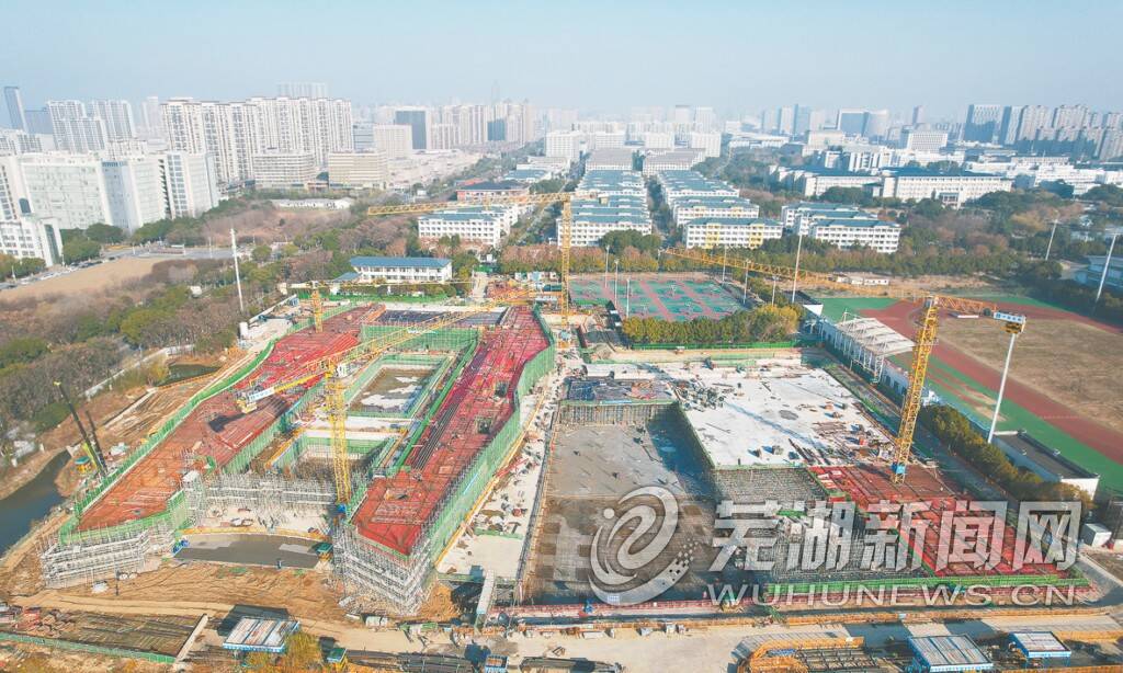 1月7日,航拍我市校地共建的重点工程——市游泳跳水馆建设现场塔吊林立,施工正酣。据了解,芜湖市游泳跳水馆功能定位为“多功能综合性甲级大型游泳跳水馆”。场馆内将建设一个50米标准游泳池,一个跳水池及一个50米热身池,可承担国际水上单项赛事,同时面向公众开放,进一步满足群众日益增长的运动休闲需求。目前项目所有混凝土结构施工已基本完成,预计明年1月建设完成。