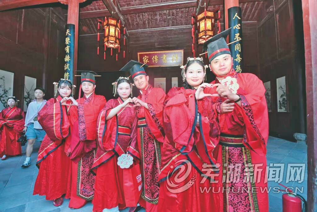 在芜湖古城,领结婚证可以有多浪漫?答案或许藏在一座百年徽派老宅里。这座老宅就是位于儒林街的“小天朝”。它不仅是安徽省文物保护单位,还有了一个甜蜜的新功能——婚姻登记。新人们可以在这座古韵悠然的庭院里,许下“百年好合”的誓言。而这份关于婚姻的缘分,早在130多年前就已埋下伏笔。